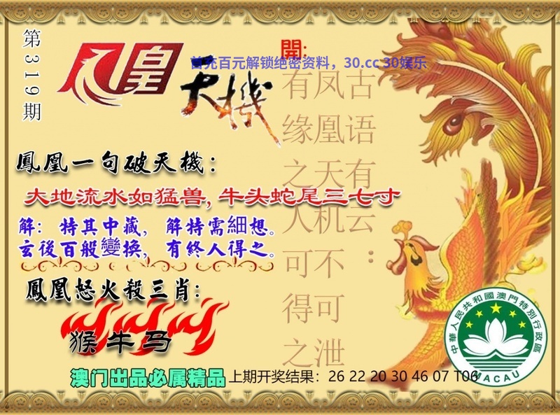 | 320期:三肖 | 鸡马牛 | 發00中 |